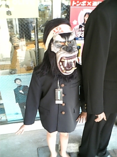 受験生や入学生に向けて制服のマネキンを設置しているのですが、所詮はコング。見えにくいですが頭に巻いている『必勝』のハチマキは自然界の掟でしょうか。